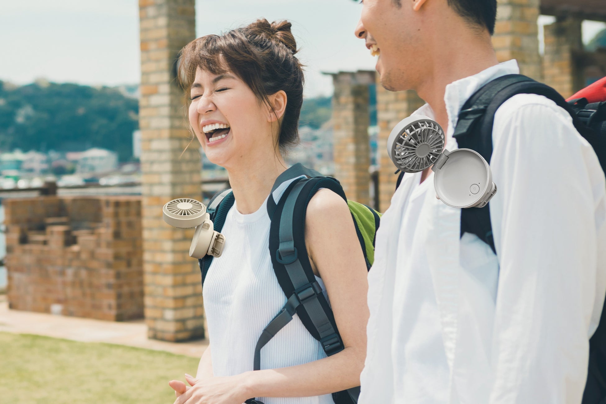 本製品は、当社が2020年から販売をしている日傘やリュックなどに取り付けて使用できる小型扇風機です。