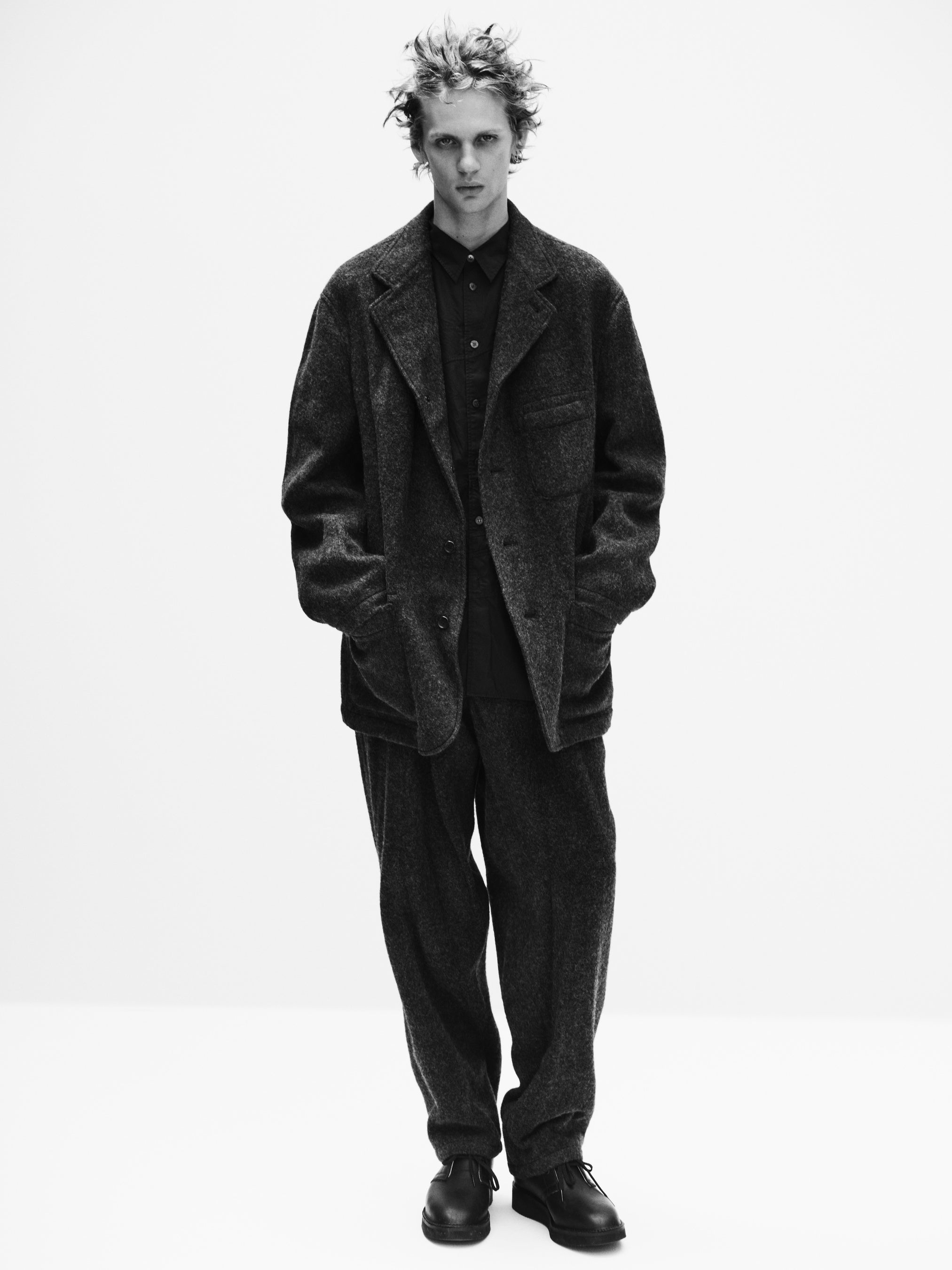 ブランドの核である黒をベースにしつつ、緻密なパターンや素材の質感、配色のバランスまで徹底的にこだわり、MASSESとのコラボレーションにふさわしい全36型に及ぶ充実したコレクションを展開。重厚な存在感とともに、新たなムードをまとったY’s for men × MASSESの世界観を、ぜひご覧ください。
