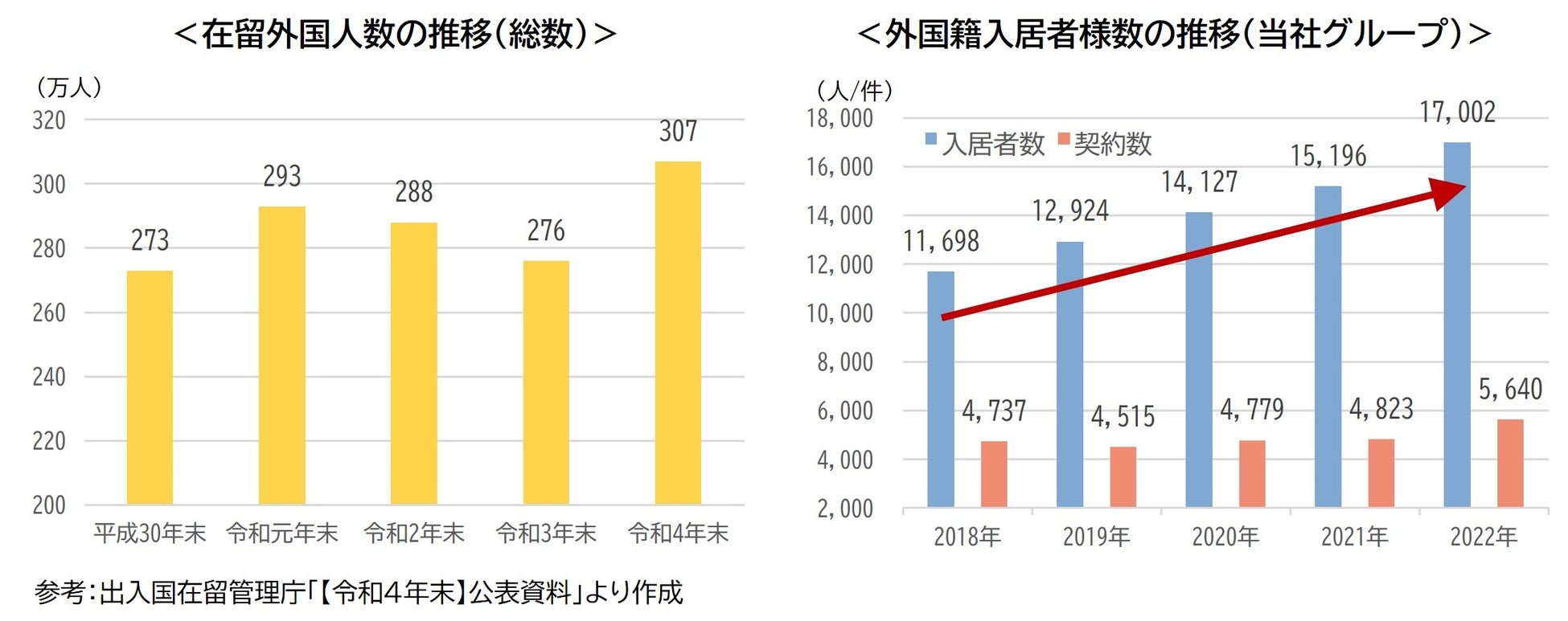 同社は、昨年10月の新型コロナウイルス感染症に関する水際対策緩和以降、急速に回復しつつあるインバウンド需要に対応するため、外国籍入居者様の更なる受け入れ強化を目指します。