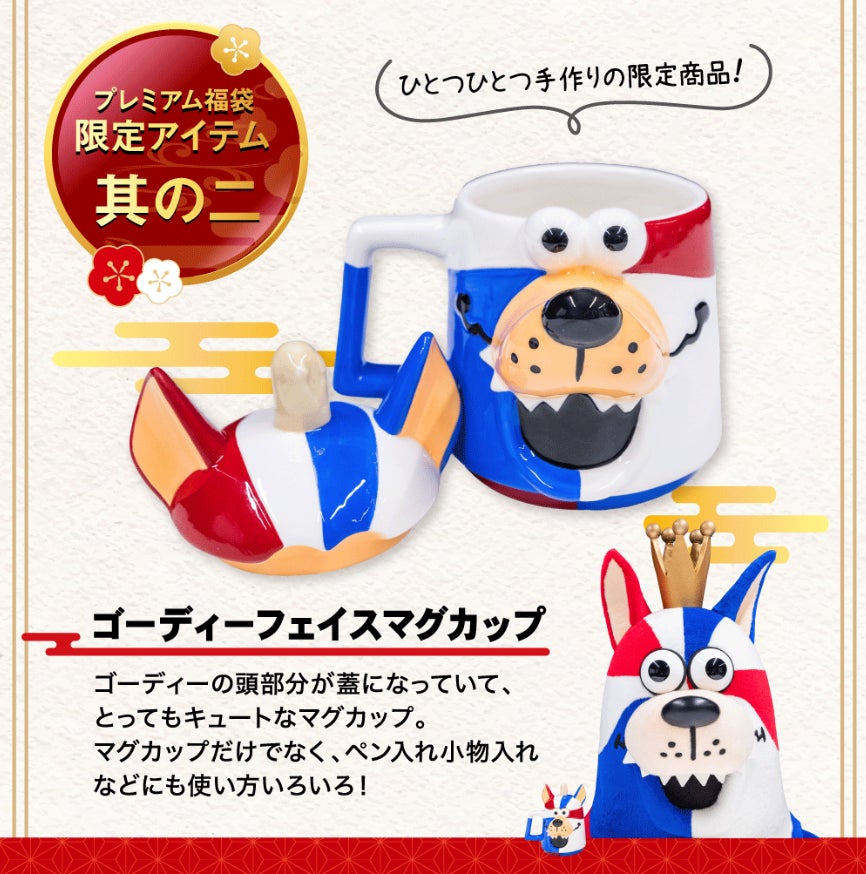今年も、年に一度の「キングス福袋」の季節がやってまいりました!今年の「プレミアム福袋」には、ゴーディーの顔がそっくり表現された陶器の「マグカップ」の他に、全選手がデザインされた「バスタオル」や、「ワイヤレスイヤフォン」など、福袋でしか手に入れることのできないアイテムがたっぷり詰まっています。これまでよりもさらに豪華な内容となったキングス福袋をお楽しみに!