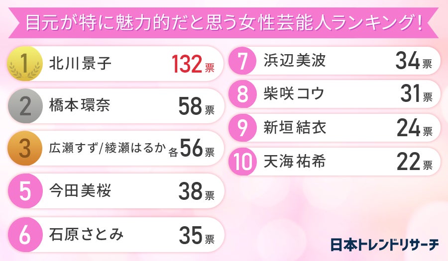 日本トレンドリサーチ・目元が魅力的だと思う女性芸能人に関する調査