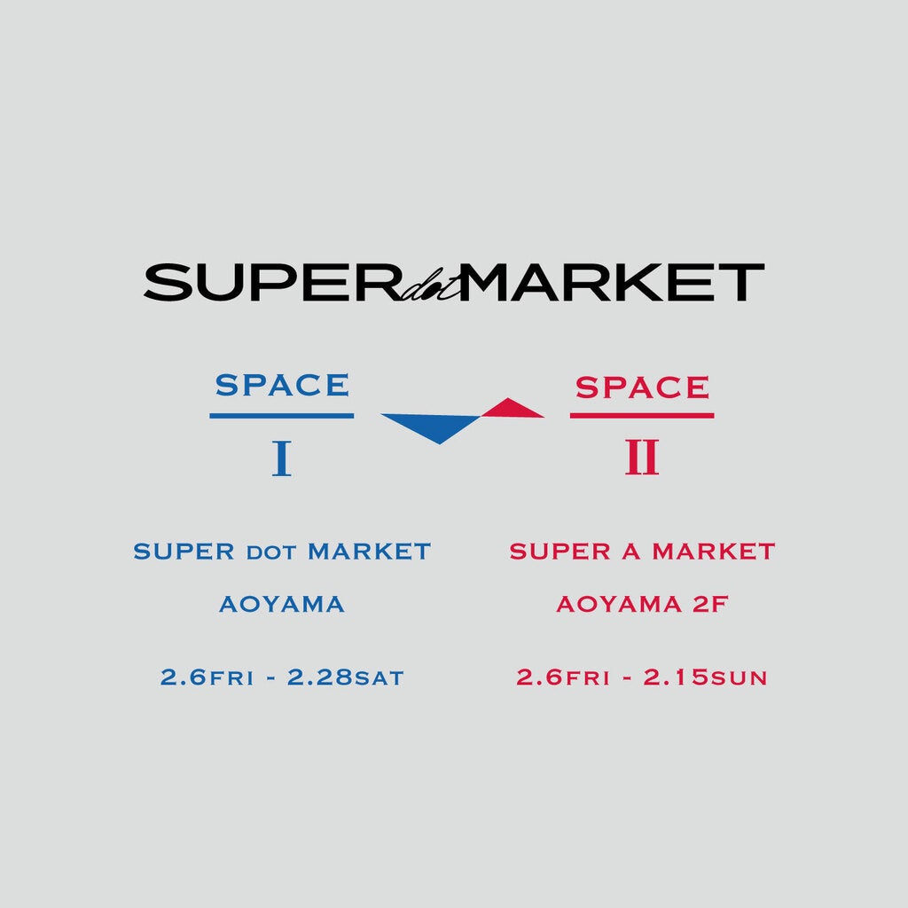 スーパー ドット マーケット 青山、スーパー エー マーケット 青山では、2月6日(金)より〈SUPER dot MARKET SPACE1/SPACE2〉を開催いたします。