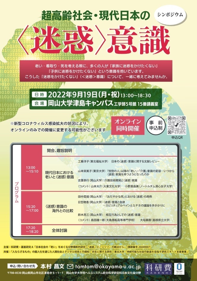 【岡山大学】シンポジウム「超高齢社会・現代日本の〈迷惑〉意識」〔9/19木,ハイブリッド開催〕