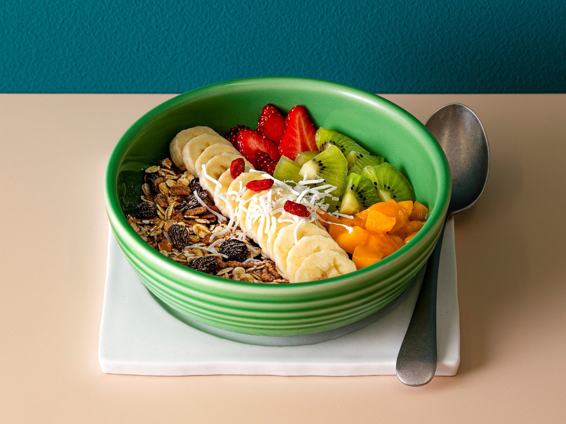 フレッシュフルーツと豊富なトッピングが魅力の、夏限定アサイーボウルが新登場。上品な甘さのアサイーに、マンゴー・キウイ・バナナ・いちごの4種のフルーツと、グラノーラ・クコの実・ココナッツをトッピング。もったりとしたアサイーとザクザクのグラノーラ、フルーツの食感の違いも楽しめます。
