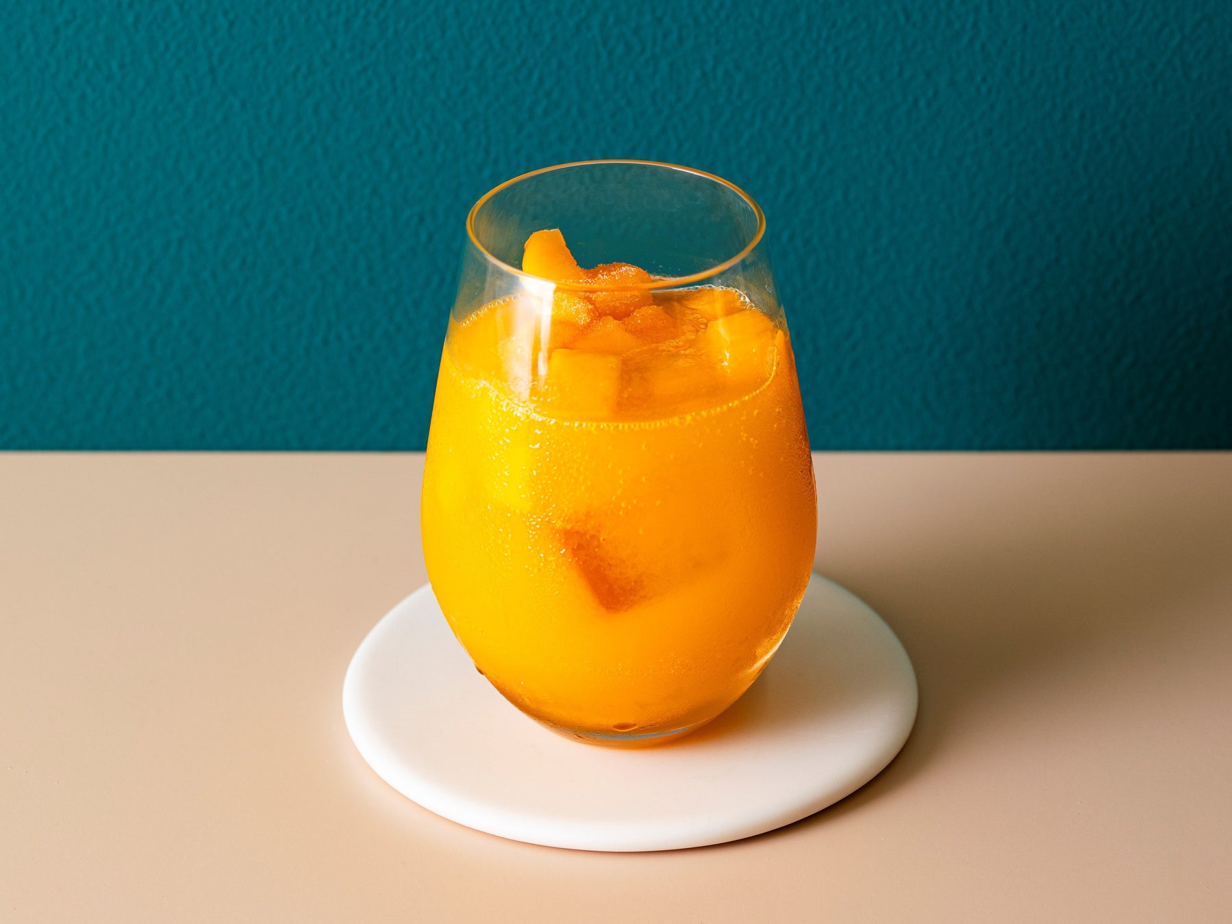 マンゴーやパイナップルなど南国フルーツを使った「SiCX京都蒸留所」のマンゴージンは、トロピカルな味と香りが特徴。このジンをベースに、マンゴージュースと炭酸で割り、最後にフローズンマンゴーを加えた夏らしい1杯。爽やかな果実味が口いっぱいに広がります。※20歳未満の者の飲酒は法律で禁止されています。