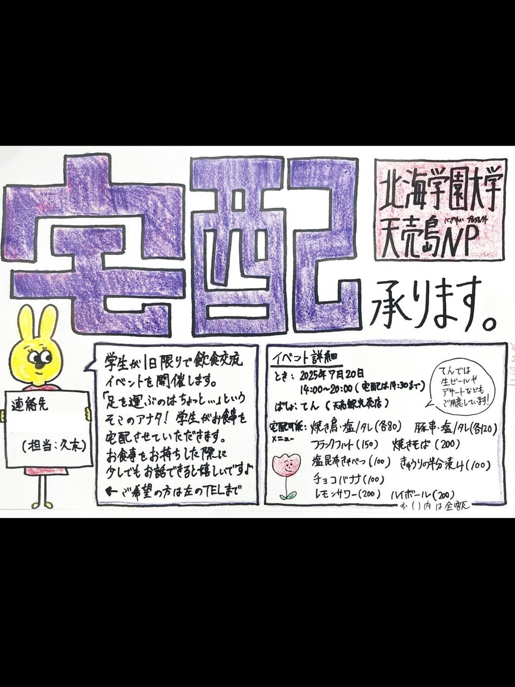 北海学園大学の取り組んでいる「天売島にぎわいプロジェクト」と連携し、次のとおり実施する。