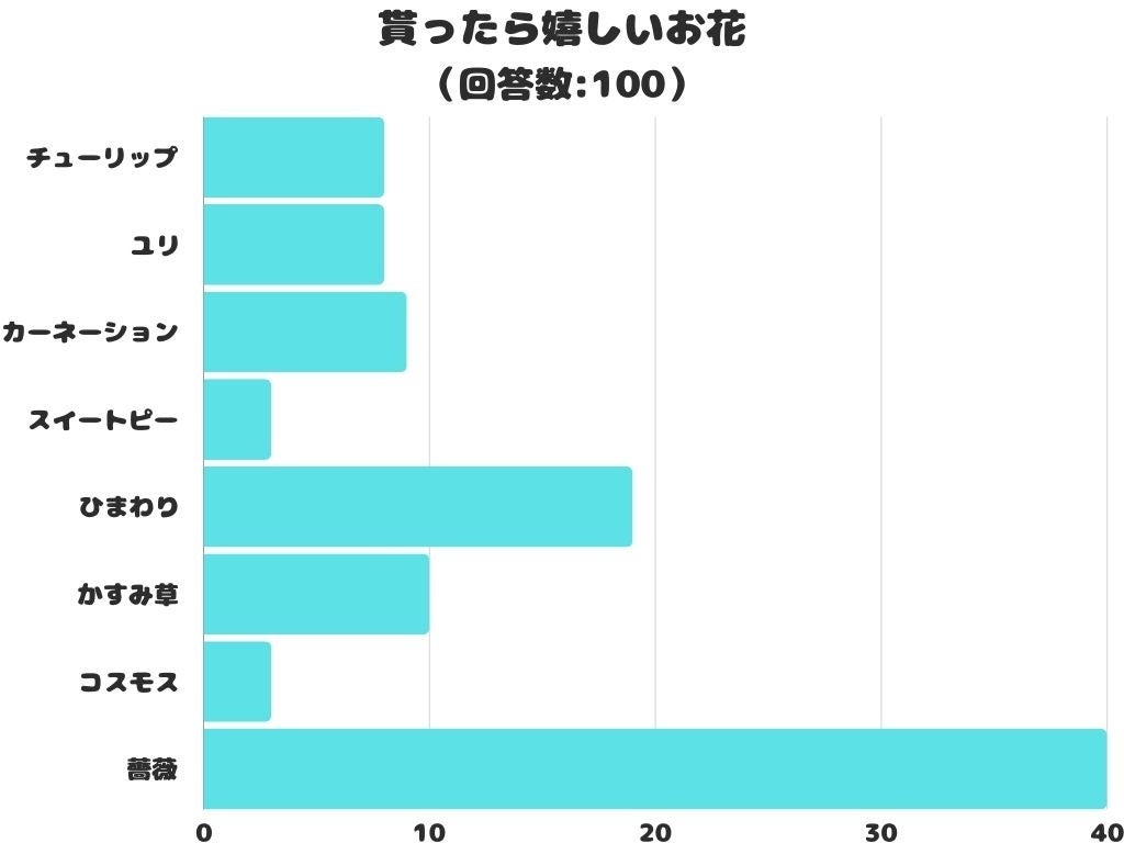 100人にアンケートを行ったところ、「薔薇」と回答したのは全体の40.0%でした。