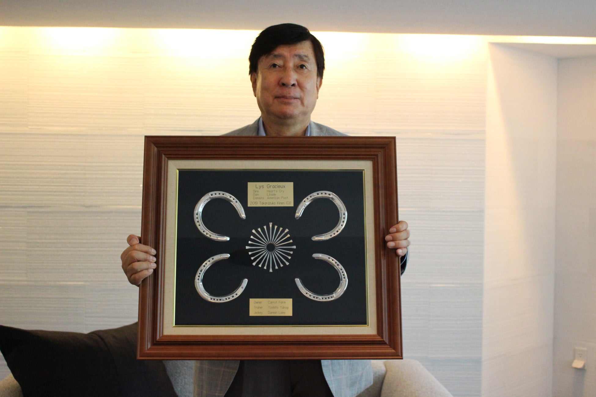 左:キャロットファーム リスグラシュー 宝塚記念優勝時装着勝負鉄(No.11)