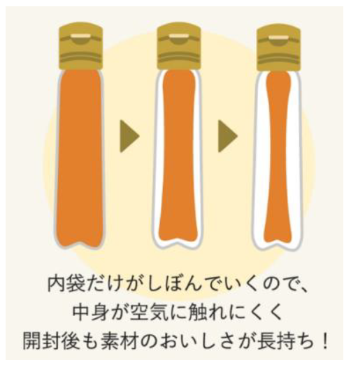 2018年には、チューブ入り香辛料で日本初となる「二重構造容器」を採用した「おいしさ長持ちチューブ」を開発。中身を空気に触れにくくすることで、開封後も素材のおいしさが長持ちするとともに、底部の形状を改良し、より絞り出しやすくしました。