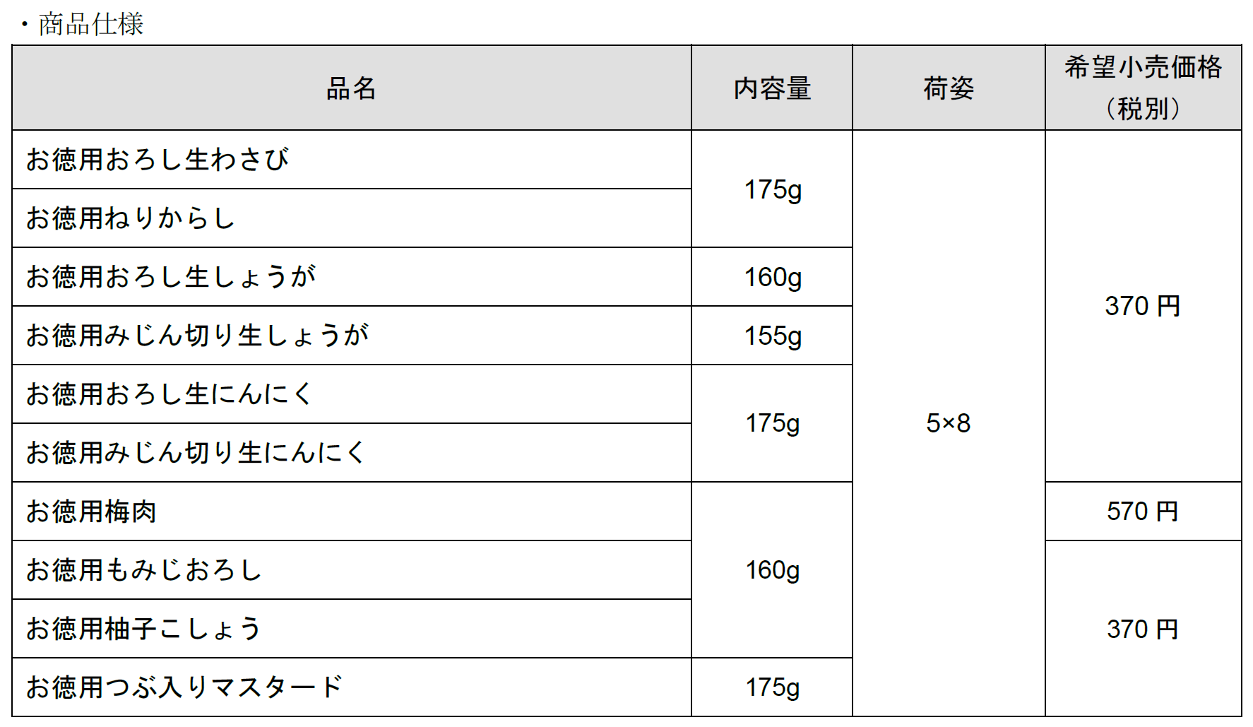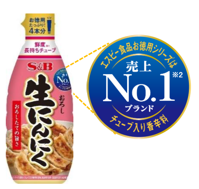 通常のチューブ調味料4本分のサイズの「お徳用」シリーズは、調理にたっぷり使用できる使いやすさと、コストパフォーマンスの高さが支持され、チューブ入り香辛料市場No.1※1ブランドへと成長しました。パッケージに「売上No.1」を明記し、ブランド価値を強化したデザインにリフレッシュしました。