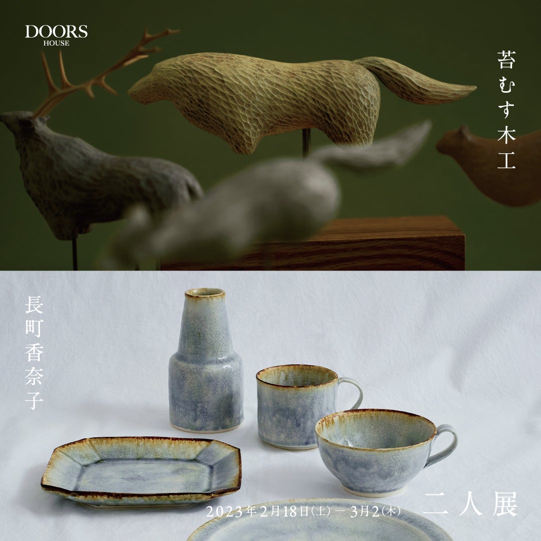 2023年2月18日(土)から3月2日(木)の期間中、大阪 DOORS HOUSE(URBAN RESEARCH DOORS 南船場店併設)にて 苔むす木工・鈴木智浩さん、陶芸作家・長町香奈子さんの二人展を開催致します。