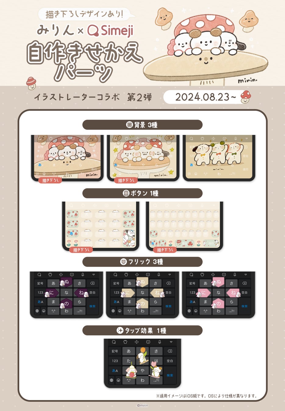 Z世代に大人気!キーボードアプリ「Simeji」、イラストレーターコラボ第二弾、人気イラストレーター「みりん」とのコラボ自作きせかえパーツをリリース!