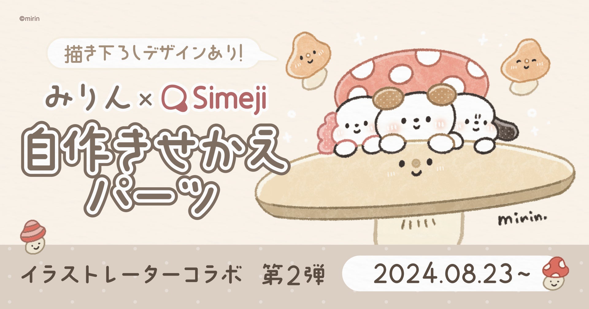Simejiとイラストレーターのコラボイベントを開催中!第二弾は、ゆるっとほっこりするイラストで人気沸騰中のイラストレーター「みりん」の自作きせかえパーツをリリースします。本コラボでゲットできる自作きせかえパーツのデザインの中には、Simejiだけの限定描き下ろしも!