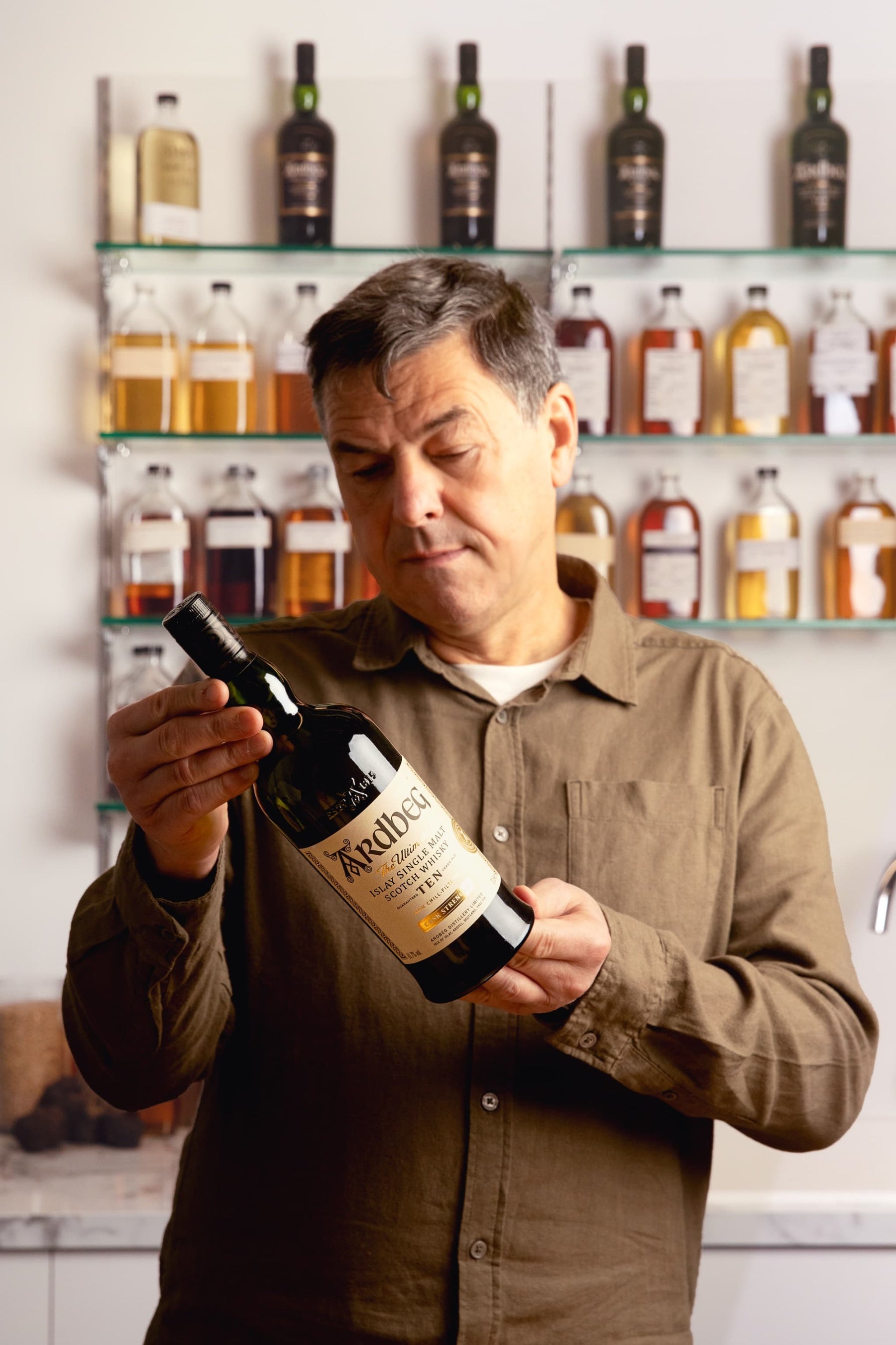 「このカスクストレングスのアードベッグ 10年は、蒸留所のクラシックスタイルを祝福する、まさに記念碑的な存在です。ビル博士と私が、通常よりも高い度数で仕込まれたニューメイクスピリッツの樽から造り上げました。コミッティーメンバーが愛してきたすべてのフレーバーに、新たな強度が加わっています。ボトルを手にできた幸運な方は、トフィーやタール、フェンネルや潮風といった香り、そしてピートモス、モルト、燻製シナモンを思わせる甘く煤けた味わいが、忘れがたい一杯として広がるのを感じるでしょう。コミッティーに乾杯(スランジヴァ)!」