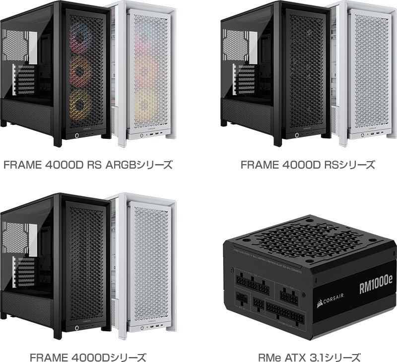 CORSAIR社製ミドルタワー型PCケース「FRAME 4000D」シリーズ、PCI Express 5.1対応電源ユニット「RMe ATX 3.1」シリーズを発表
