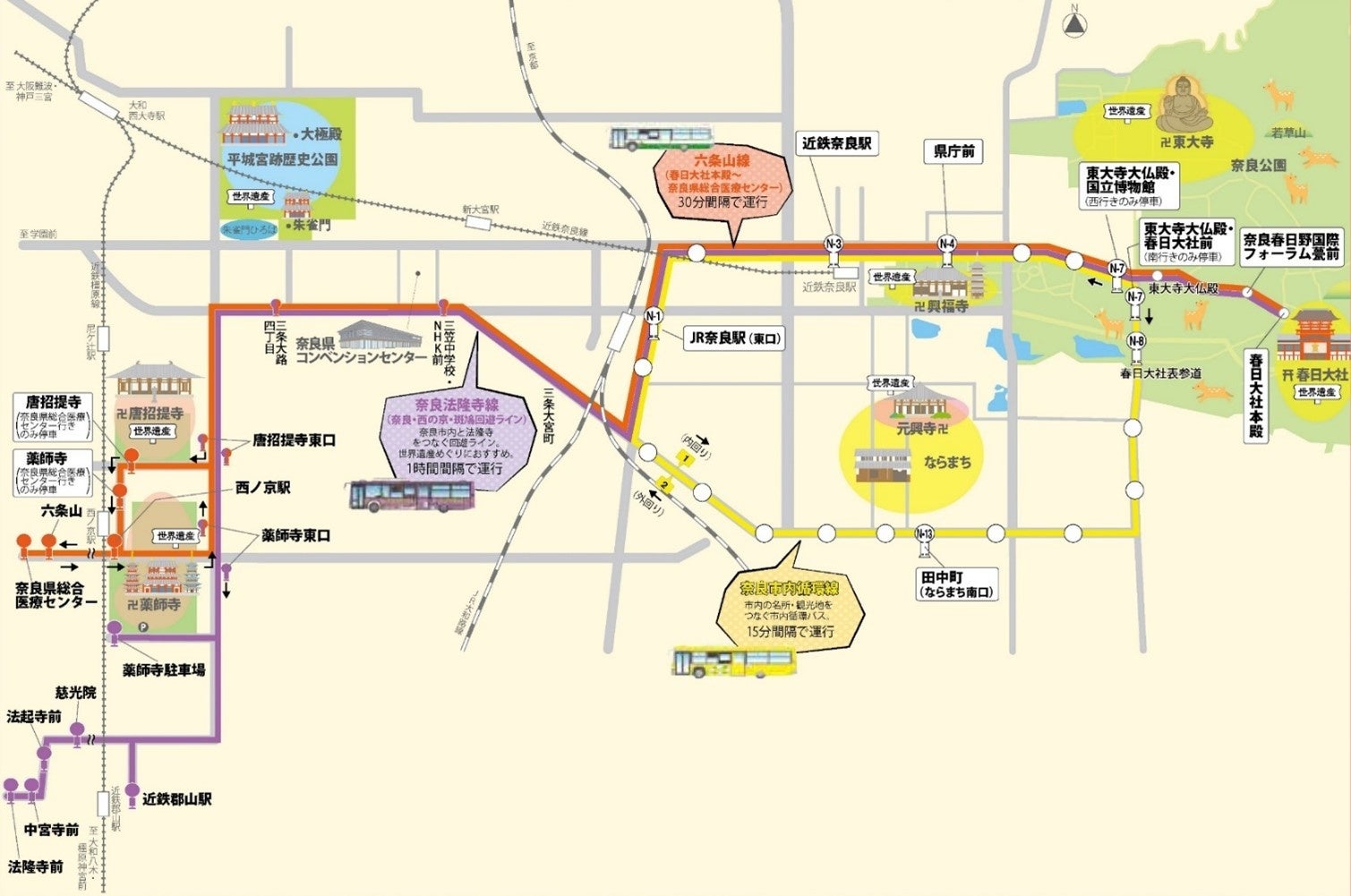 対象路線 : 奈良市内循環線、六条山線、奈良法隆寺線