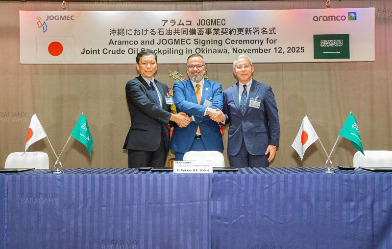 JOGMEC(本部:東京都港区、理事長:髙原一郎)は、資源エネルギー庁立ち合いのもと、アラムコ(本社:サウジアラビア王国ダーラン、社長兼CEO:アミン・ナセル氏)と2025年 11 月12 日、署名式会場である沖縄において、原油タンク貸借等に係る更新契約を締結しました。