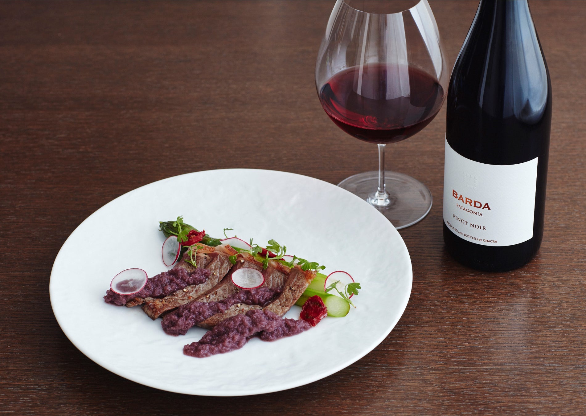 飼料が異なる牛肉の味わいの違いをお楽しみいただけます。お肉の旨みを引き出す玉ねぎソースのレシピと、ミディアムレアに焼き上げられた牛肉の赤身に上品に寄り添うミディアムボディの赤ワインがセットになっています。