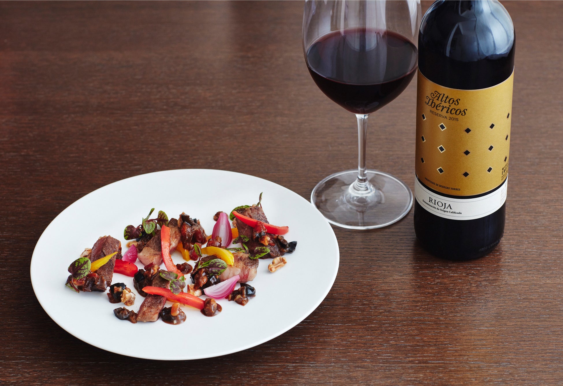 ランクが異なるイベリコ豚の味わいの違いをお楽しみいただけます。イベリコ豚の強い旨みと相乗効果を生むクルミをアクセントにしたバルサミコソースのレシピと、イベリコ豚と同じスペイン産のフルボディの赤ワインがセットになっています。