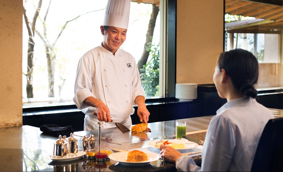 ●ふわふわオムレツと焼き立てフレンチトーストなど、シェフが目の前で焼き上げる「鉄板ブレックファースト」