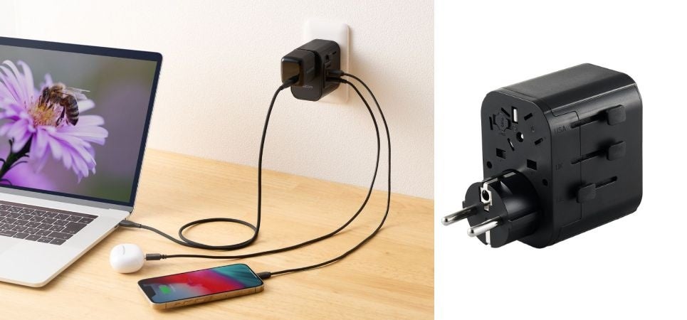 日本のAC充電器を海外の形状に変換できる、USBポート搭載マルチ変換アダプター