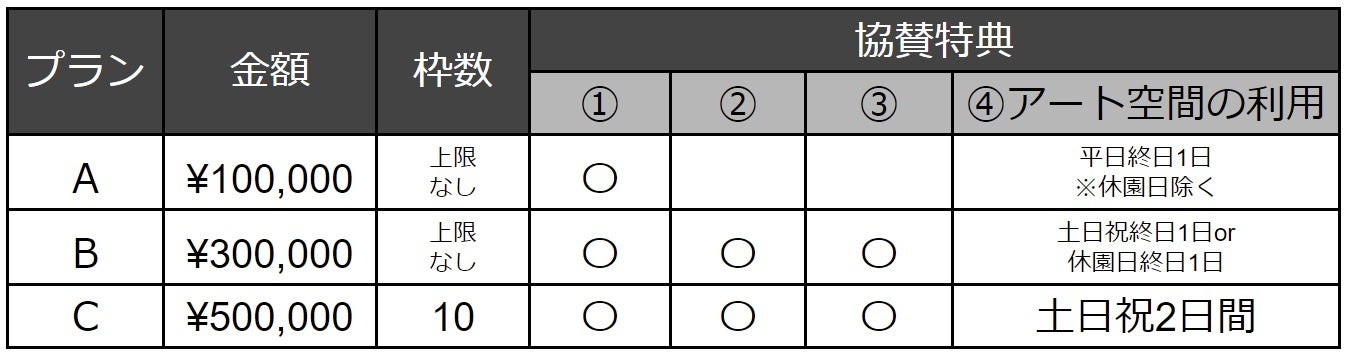 ①パンダバンブーアートプロジェクト2024公式Webページでの社名・ロゴ掲載、公式SNSでの企業・団体紹介、Panda Bamboo Art Projectの公式ロゴの使用権(商業利用不可、PRやCSR活動への利用限定)