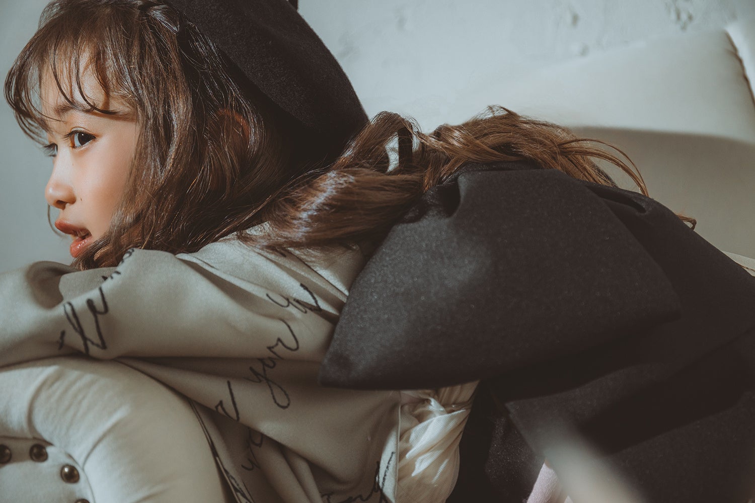 衣装はワントーンでシックに固めつつ、帽子で抜け感をプラス。