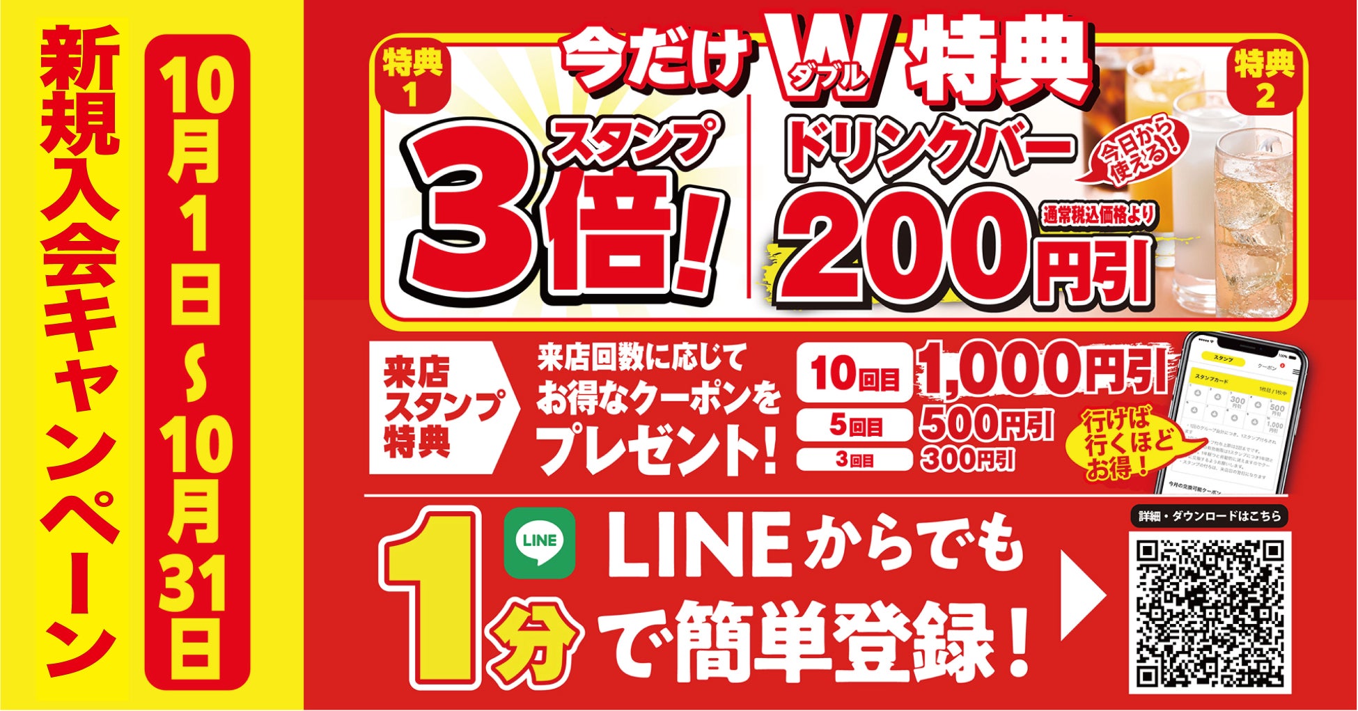 【お好み焼本舗】今だけW特典!公式アプリ新規入会キャンペーンを10月1日(火)より期間限定で開催!!