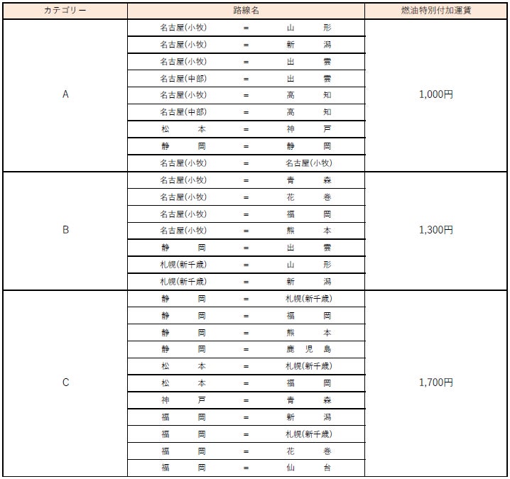3.各種割引運賃利用の場合にも、この燃油特別付加運賃を適用いたします。