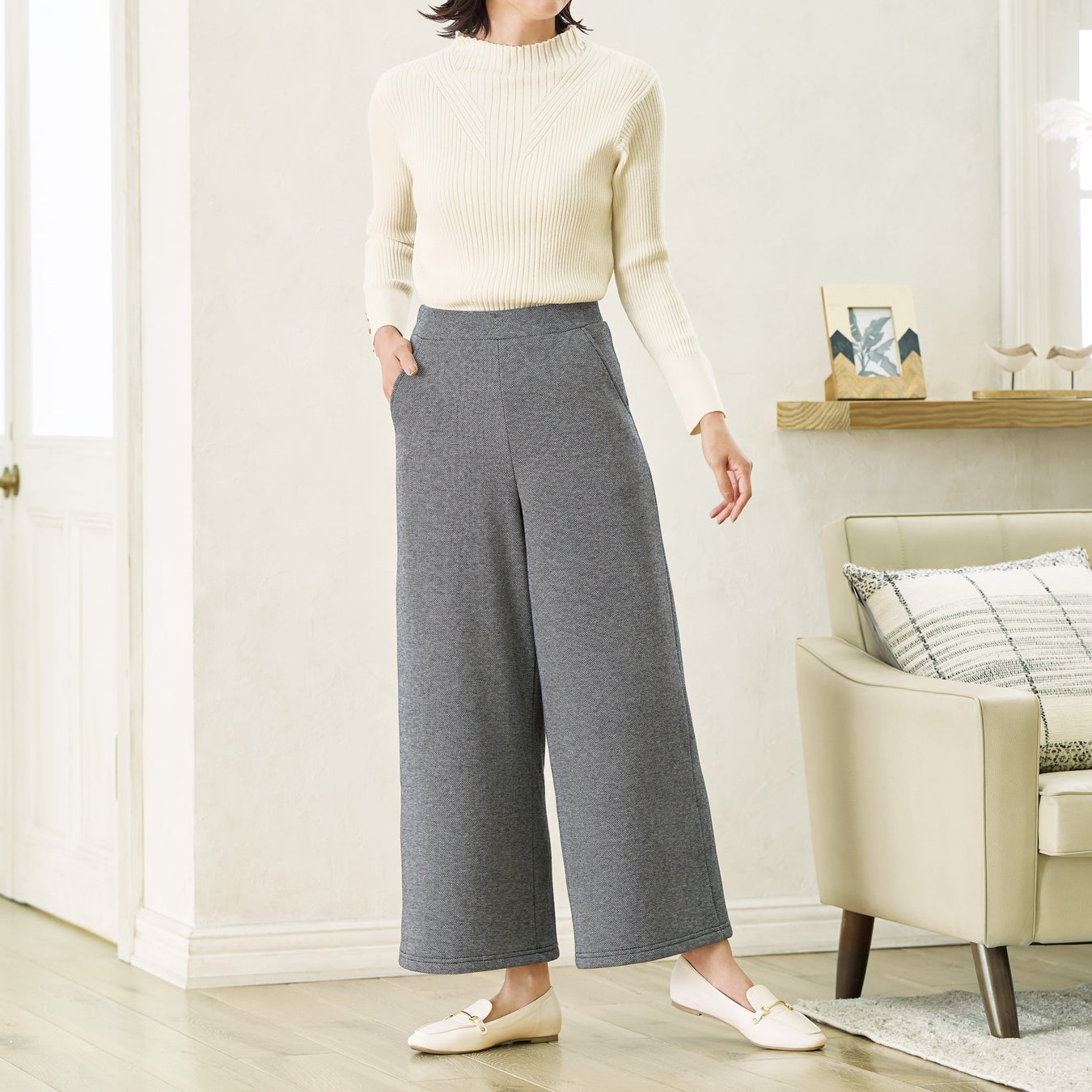 【ニトリのアパレルブランドN+】“毛布に包まれるような着心地”の大人気パンツに新たなシルエットが登場!