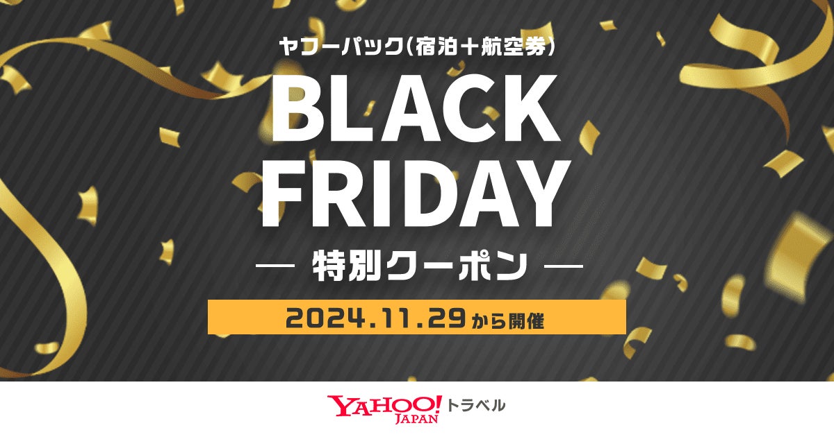 LINEヤフー株式会社(以下、LINEヤフー)が提供するインターネット旅⾏予約サービス「Yahoo!トラベル」は、2024年11月29日(金)から12月4日(水)までの6日間限定で「ブラックフライデー」(以下、本企画)を初めて開催します。