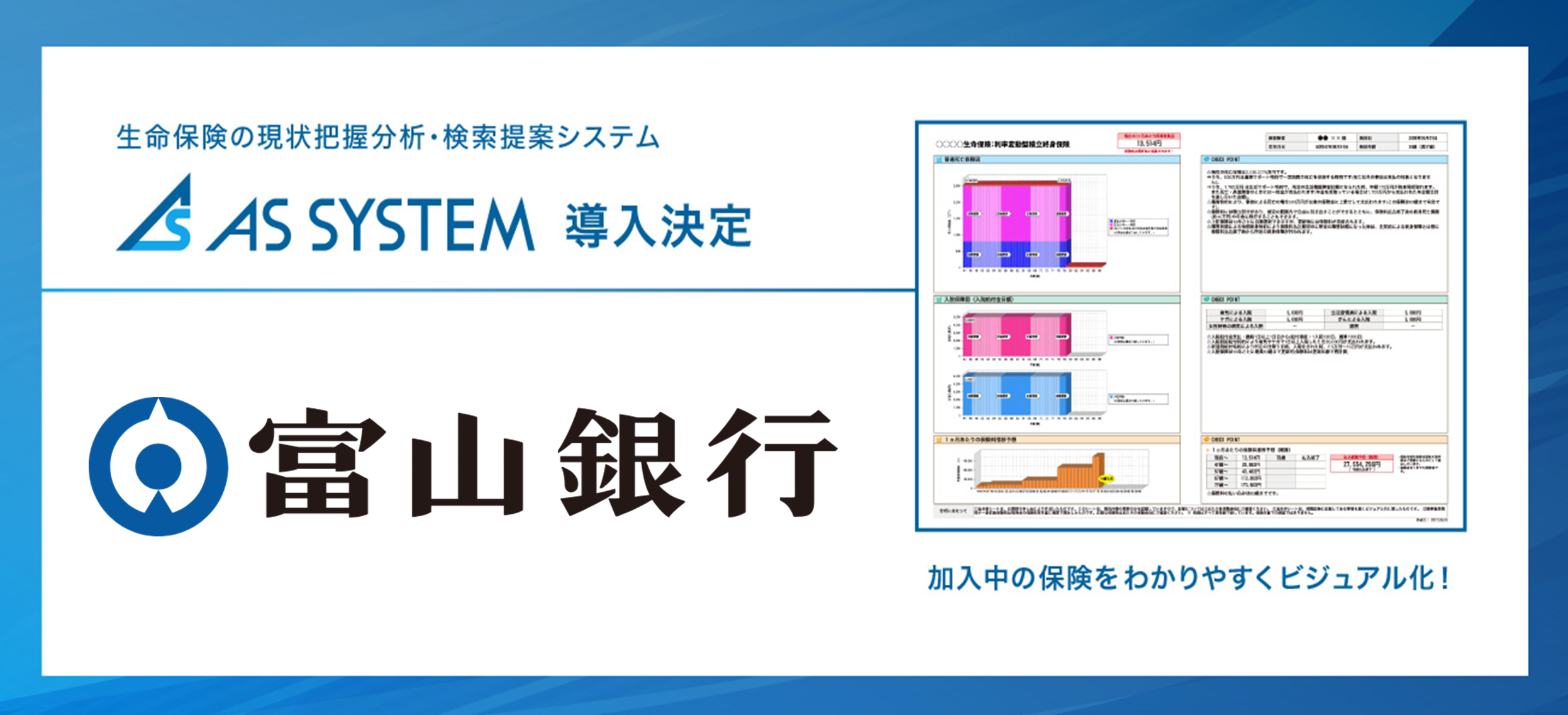 “保険×IT×AI” 生命保険の現状把握分析・検索提案システム『ASシステム』 富山銀行へ導入が決定