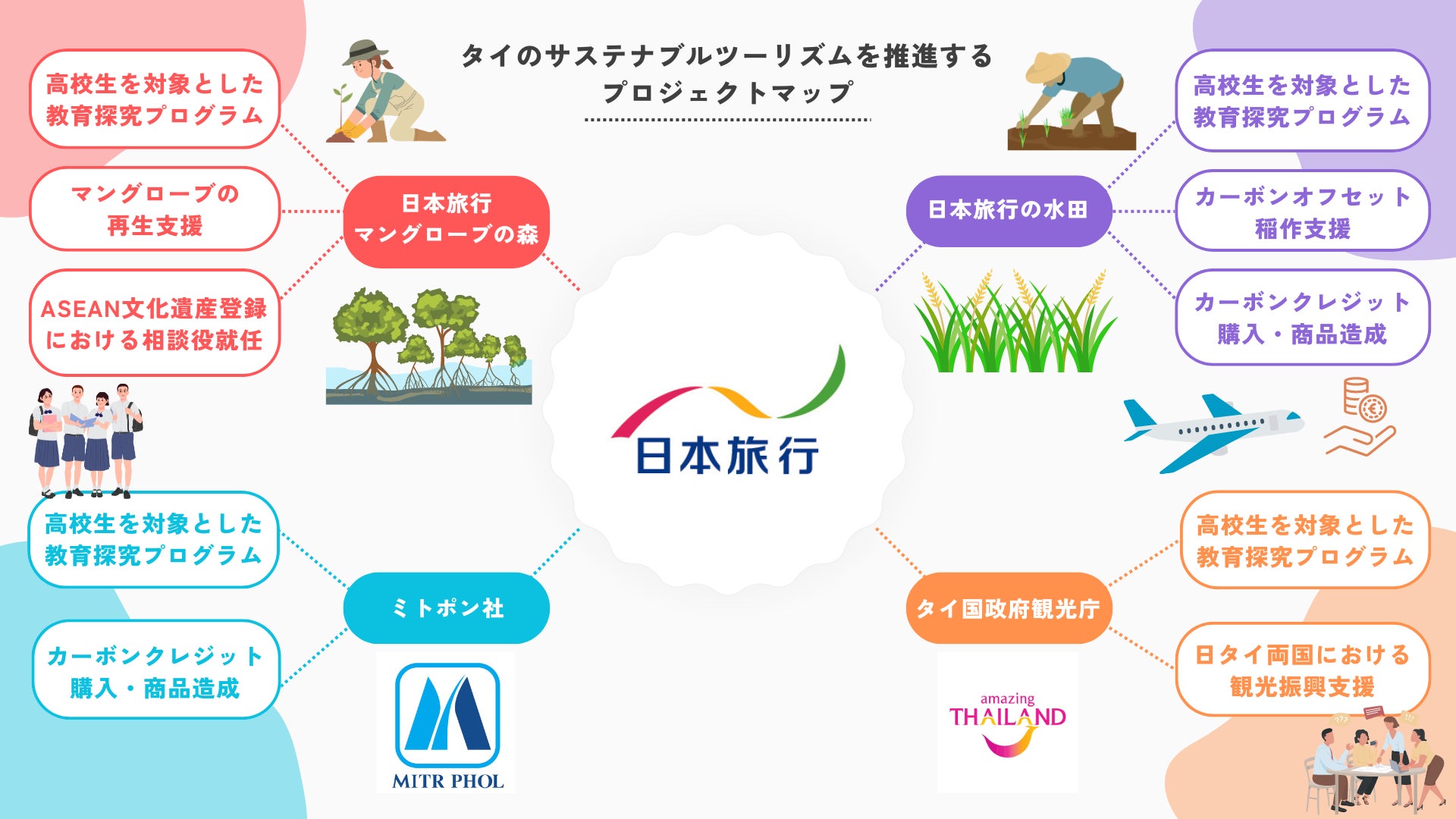株式会社日本旅行(本社:東京都中央区、代表取締役社長:小谷野悦光)は、観光産業として脱炭素社会に貢献することを目的に、日タイ両国におけるサステナブルツーリズム推進の国際協力プロジェクトをスタートさせました。自治体・企業・教育マーケットに対し、タイの環境保全活動に参加することを通じ、環境保全に関するグローバルな視点を提供し、参加者自身の行動変容を促す取り組みです。この度、プログラムの開始にあたり、タイ各地におきまして2件の包括連携協定とカーボンクレジットの購入契約を締結しました。