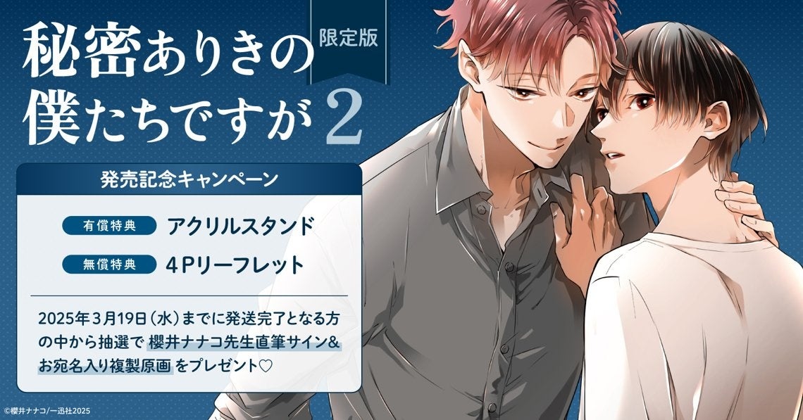 直筆サイン入り複製原画が当たる!櫻井ナナコ先生『秘密ありきの僕たちですが(2) 限定版』発売記念キャンペーン開催!【ホーリンラブブックス】