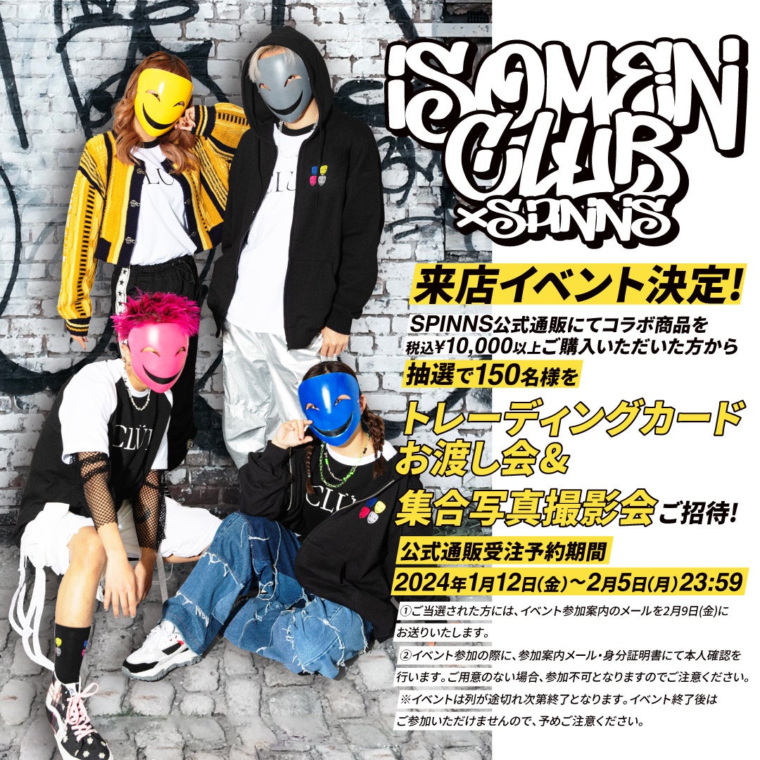 ダンス動画で話題沸騰中のクリエイター「イソメン倶楽部」×SPINNSのコラボレーションアイテム発売決定!さらに!SPINNS京都店にて来店イベントも開催!