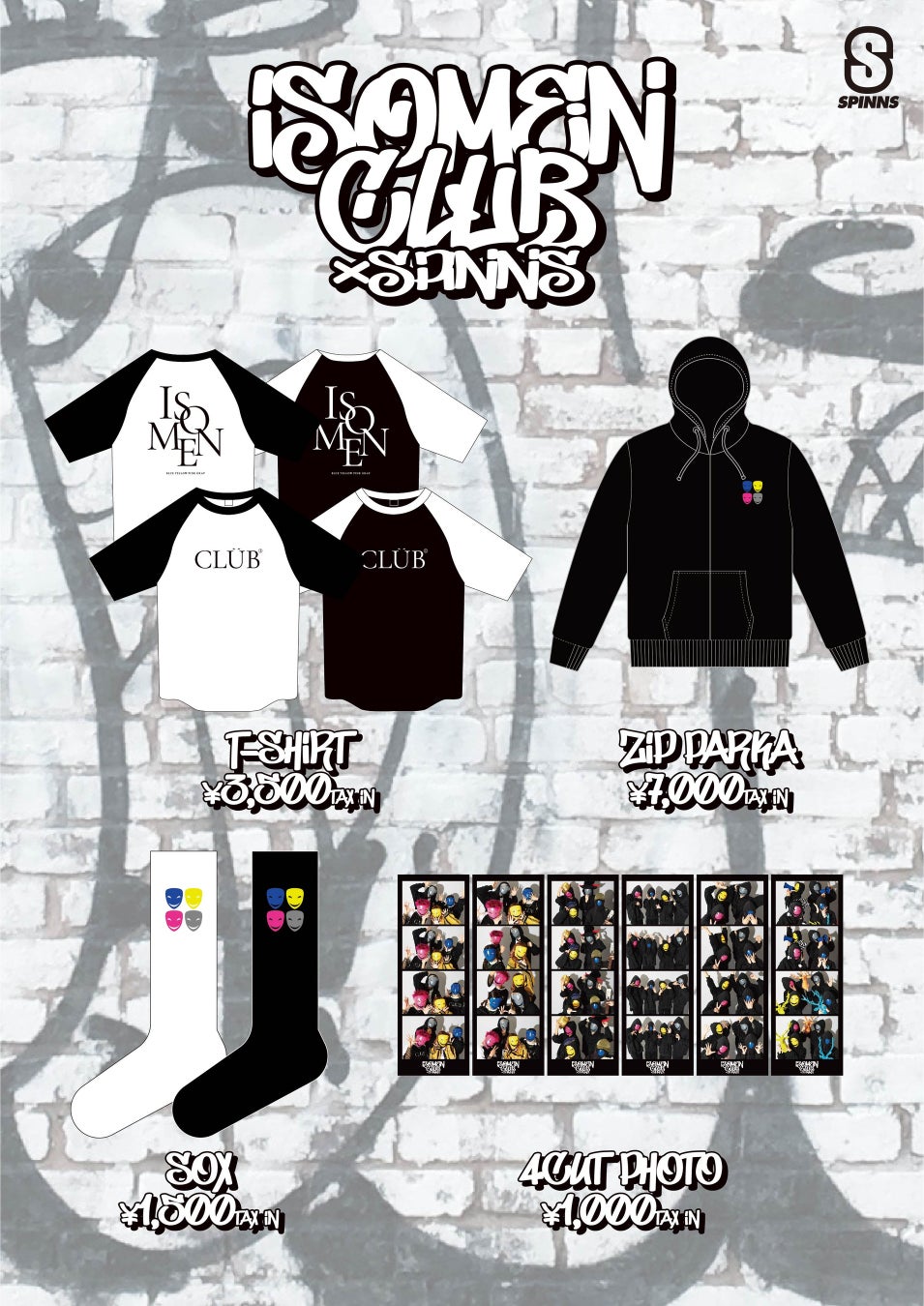 他にも、イソメン倶楽部×SPINNSコラボレーションでしか手に入らないTシャツ、ソックス、ランダム4カットフォトと豪華ラインナップが目白押しとなっております。