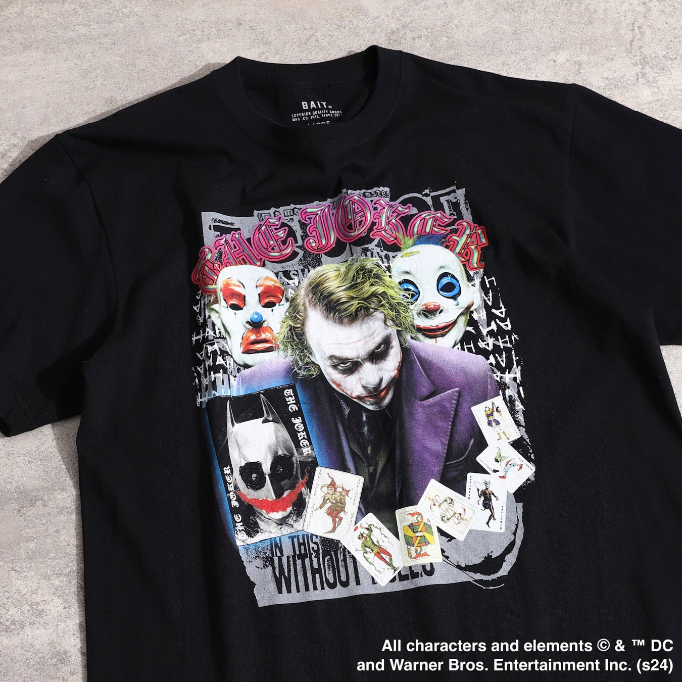 ゴッサム・シティに舞い降りた究極の悪であり、犯罪こそが最高のジョークだと不敵に笑う、その男の名はジョーカー。そんなジョーカーを象徴するマスクやトランプに加え、印象的な笑い声を表す「HAHAHA」のテキストがデザインされた1着です。