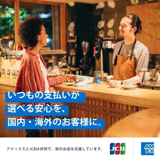 JCBとアメリカン・エキスプレスは、今後もビジネス応援グッズの無料提供や送客施策による利用促進のサポート、ウェブサイトやEメールでの情報提供などを通し、中小加盟店に寄り添った支援を、継続的に協業してまいります。
