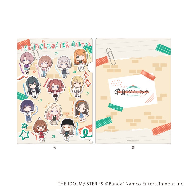 ミニキャライラストが大集合したA4サイズのクリアファイル。学校や職場で使うたびに、アイドルたちからパワーをもらえます!
