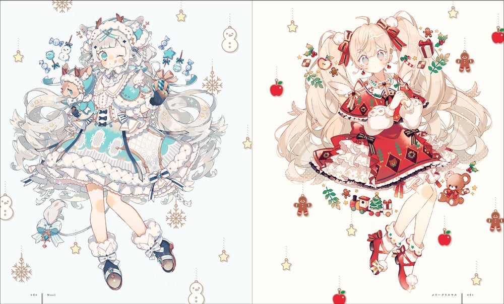 VTuberのキャラクターデザインを始め、数多の企業とのコラボレーションを手がけてきた商業シーンでの活動も含め、約120点の多彩なアートワークを掲載しています。