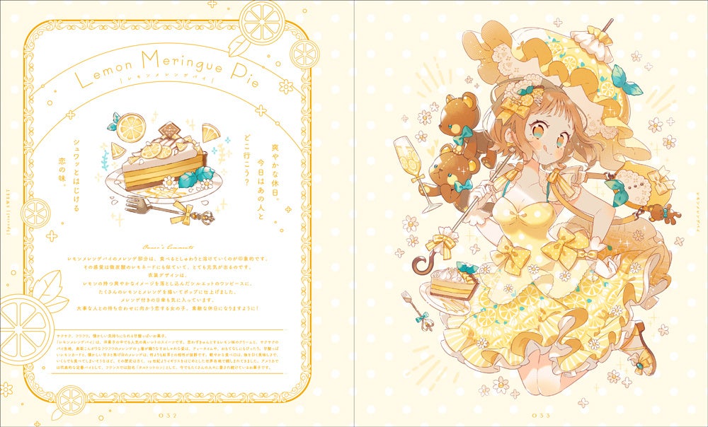 「Sugary Girls」のカバーイラストができるまでのメイキングやデザインスケッチ、実際に衣装として制作されたファッションデザイン画など、書籍でしか見られないコンテンツも多数収録。