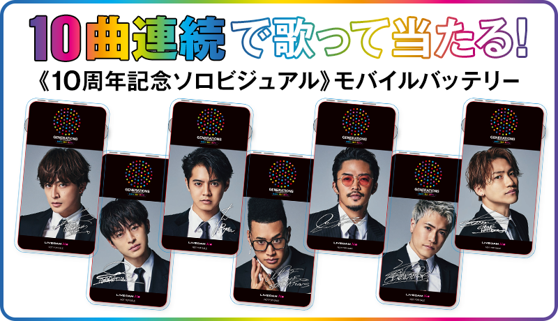 賞品*5 :【10曲連続で歌って応募】サイン入り10周年記念ソロビジュアルモバイルバッテリー7名様