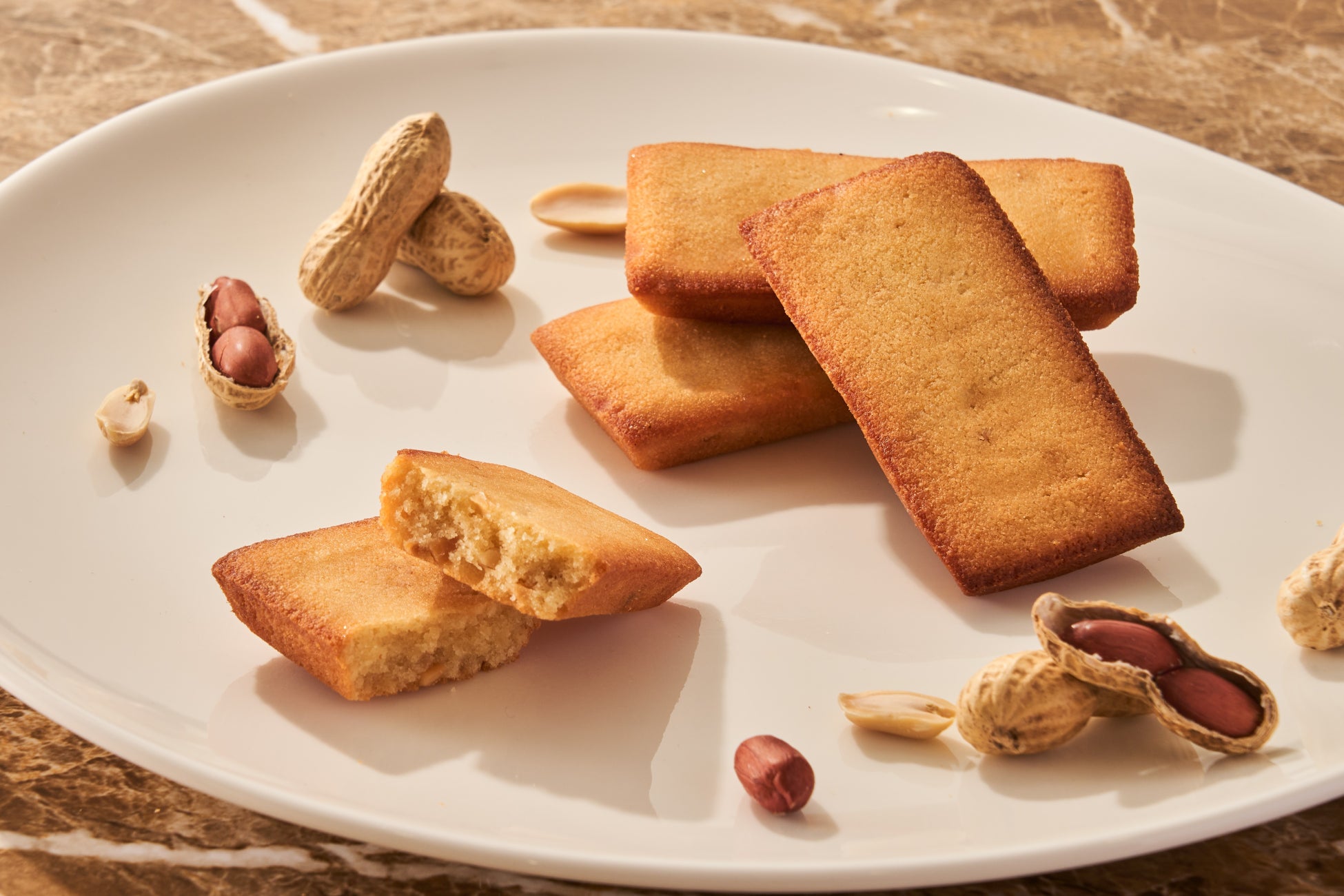 八街産の落花生を使用したとても贅沢なフィナンシェ。生地にはピーナッツペーストと焦がしバター、アーモンドプードルも加えしっとりと丁寧に焼き上げました。アクセントに落花生のダイスも加わり、落花生の甘みと香ばしさを存分にお楽しみいただけます。