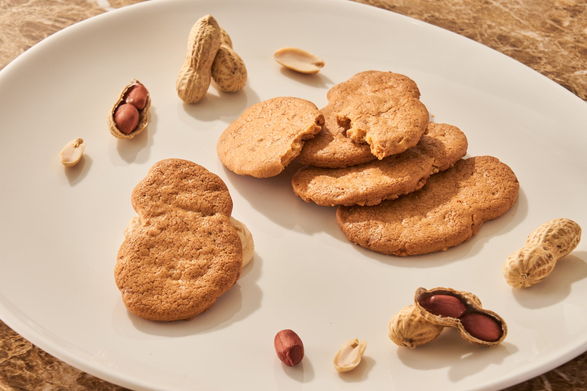 八街産の落花生を使用した、ピーナッツ型の可愛らしいサブレ。ピーナッツのダイスをバターを使用したサブレと合わせて、サックリと焼き上げました。やさしい口溶けのサブレのなかに、ピーナッツの甘みと香ばしさを贅沢にお楽しみいただけます。