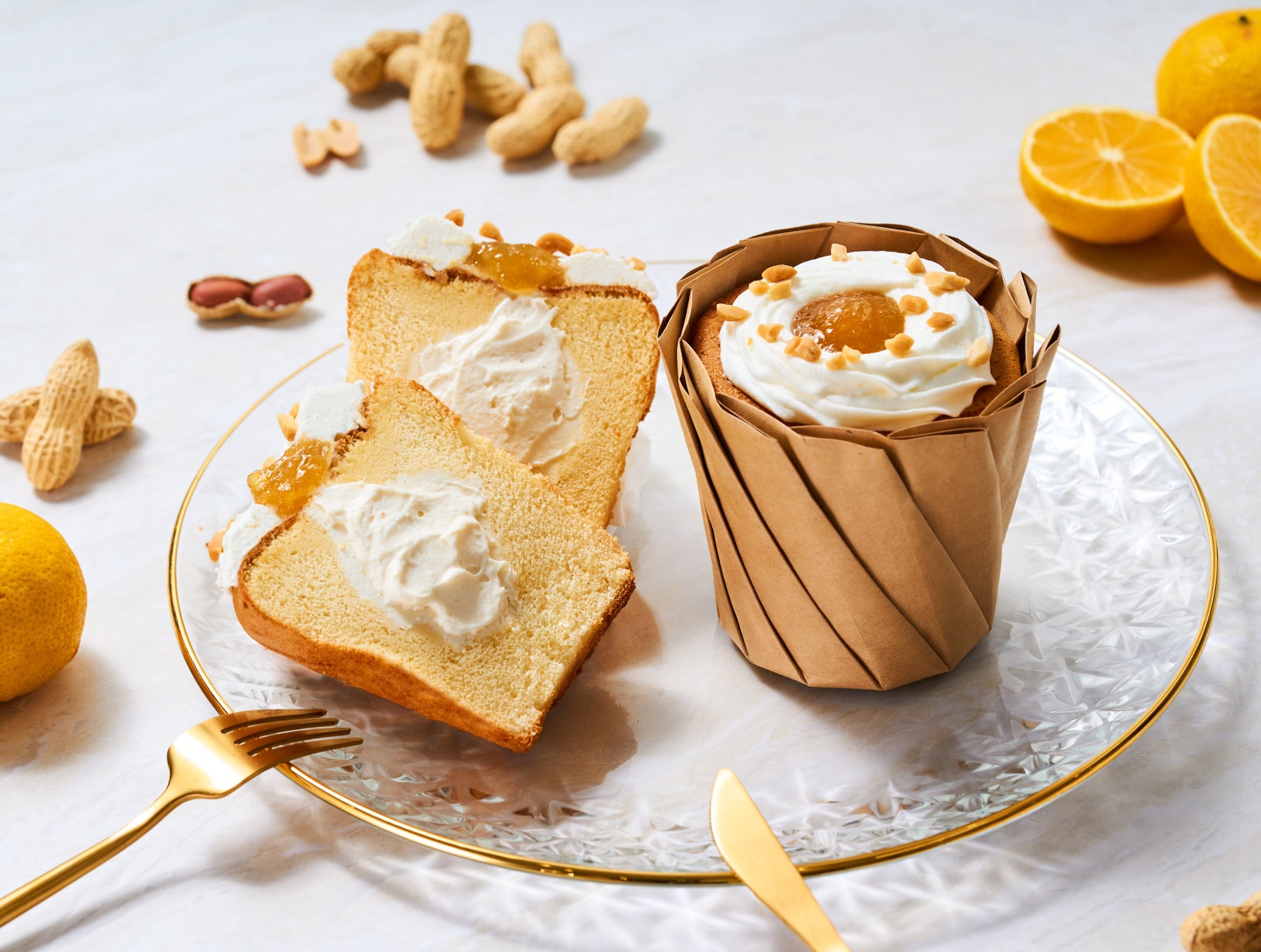 香り豊かなピーナッツカスタードクリームをしっとり丁寧に焼きあげたシフォン生地で包み込み、ゆずのペーストをトッピングしました。ゆずの爽やかな香りとほろ苦さがアクセントになって、暑い季節にもさっぱりお召し上がりいただけます。