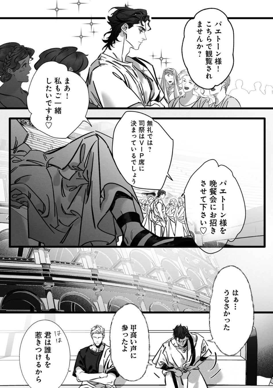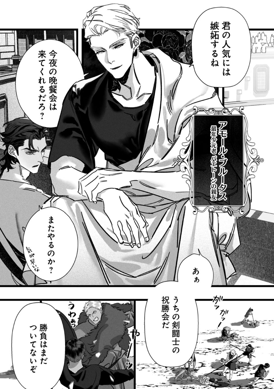 美貌の司祭・パエトーンは、友人の元老・アモールの奴隷剣闘士・地獄犬の新たな使命を聞く。