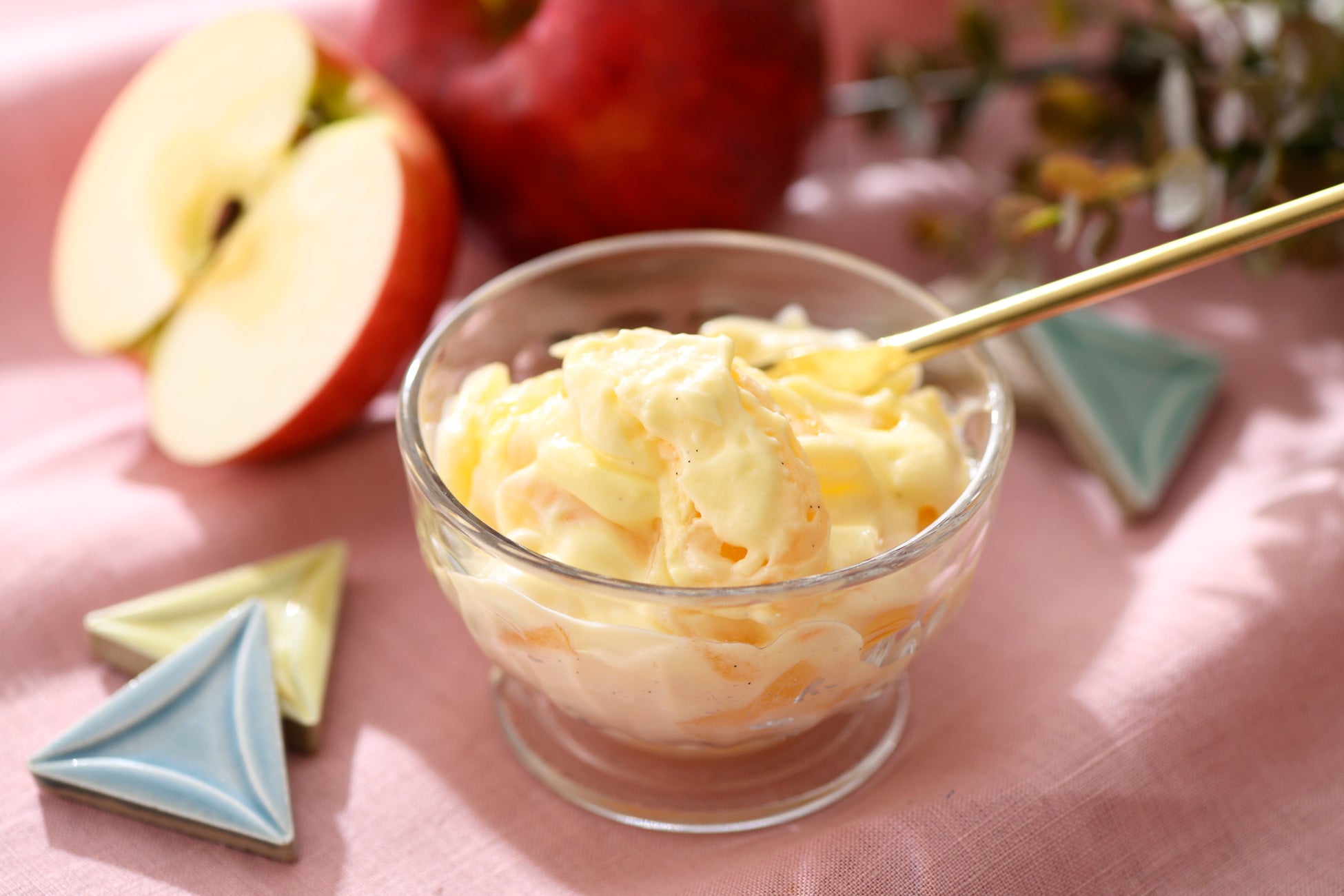 ヨーグルトのなめらかな口当たりと、カスタードのコク、りんごの爽やかな酸味とシャキシャキとした食感が絶妙に調和し、贅沢な味わいを楽しめます。