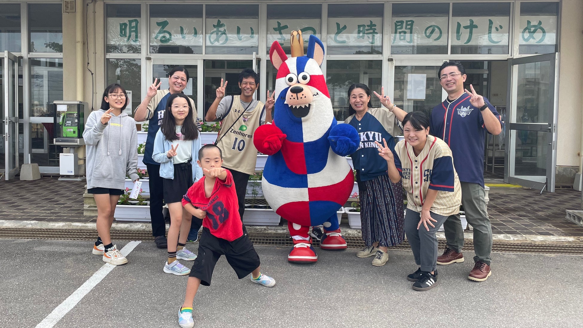 また、少しずつ肌寒くなってきたこともあり「ゴーディー温かいね」と抱きついてくれる子がいたり、アウェー戦の試合に向けて激励の声をいただいたりと、各小中学校であいさつを通して交流を深めることができました。