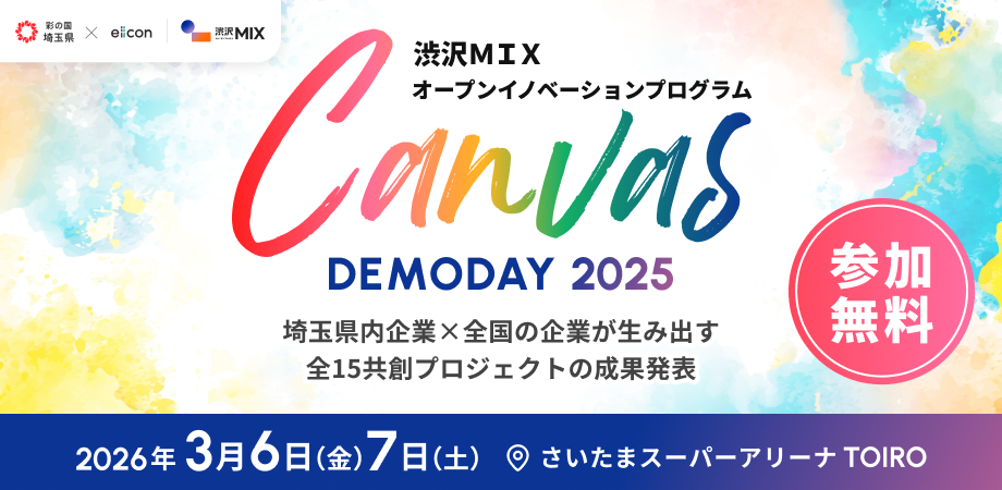 【 埼玉県 × eiicon 】渋沢MIXオープンイノベーションプログラム『Canvas DEMODAY 2025』2日間開催が決定。会場参加者募集を開始。