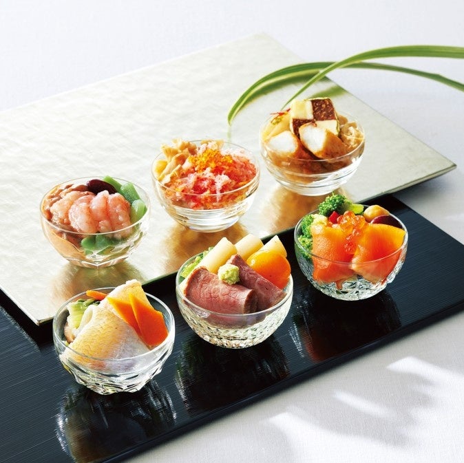 ●〈能登・和倉温泉 加賀屋〉北陸美食アソート(能登牛ローストビーフわさび風味、ふくいサーモン彩サラダ添え、いかの赤作りと甘海老塩辛小菊ちらし、ふぐの唐揚げ湯葉胡麻和え添え、小鯛の笹漬けからせんじゅと青菜添え、ほか計6点)